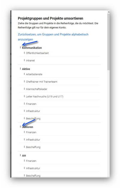 Für die Auswahl von Projekten kann ein Filter gewählt werden: