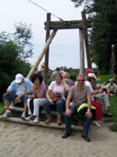 Wir verließen die Stadt und machten uns auf einen Rundweg zunächst entlang der Metter, dann Richtung Norden durch Wiesen, Felder und Wald, zuletzt durch die steilen Hänge der Weinberge wieder zurück nach Bietigheim. Eine ausgiebige Rast wurde an einem Grill- und Kinderspielplatz eingelegt. Und wie nicht anders zu erwarten, erwachte bei manchem das Kind in der Frau/ im Manne. Mancher überschätzte gar seine Kräfte und konnte nur durch Ellens trockenen Trollingerkuchen wiederbelebt werden.